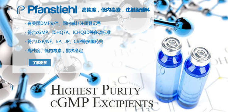 “熱烈祝賀Pfanstiehl的注射級甘氨酸Glycine(G-140)喜獲CDE登記號F20250000403, 這是Pfanstiehl產品獲得的第18個CDE登記號!”甘氨酸在醫藥輔料制劑中應用廣泛,, 可作為緩沖劑,增溶劑,穩定劑等,具有諸多優勢。Pfanstiehl秉承一貫高品質理念,為滿足全球生物制藥行業對于高品質甘氨酸的需求,隆重推出的注射級甘氨酸Glycine (G-140), 具有超高純度,超低內毒素,超低金屬殘留的特點,單獨檢測29種金屬離子,并且新增DNA,RNA,DNA酶,RNA酶和脂肪酶,亞硝酸鹽等多項質量指標的檢測,符合多國藥典規定(USP, EP, BP, JPE, ChP),可用于生物治療性藥物和疫苗的生產。產品信息:· 產品名稱:Glycine, High Purity, Low Endotoxin, Low Metals, USP, EP, BP, JPE, ChP (G-140)· 中文名稱:甘氨酸· 分子式:C2H5NO2· 分子量:75.07 g / mol· CAS號:56-40-6· 產品貨號:G-140產品特點: · 超高純度,超低內毒素,超低微生物含量,超低金屬雜質殘留· 質量指標新增DNA,RNA,DNA酶,RNA酶,脂肪酶和亞硝酸鹽檢測· 符合多國藥典:USP, EP, BP, JPE, ChP· 符合ICH Q3D標準· 符合GMP標準· 已獲DMF和CDE登記號 產品應用:· 緩沖劑· 穩定劑· 增溶劑如果您對Pfanstiehl注射級別Glycine G-140感興趣,歡迎聯系Pfanstiehl 中國區代理商北京西美杰科技有限公司獲得如下詳細的產品概況說明文件和測試樣品。Pfanstiehl Inc.最新產品系列如下,歡迎聯系北京西美杰科技有限公司獲取100g裝免費樣品。北京西美杰科技有限公司為Pfanstiehl中國代理,為客戶提供完善的技術支持與售后服務。歡迎撥打西美杰客服電話400-050-4006或者登陸網站www_xmjsci_com.gx5xp.com了解更多信息。 更多>西美杰介紹
